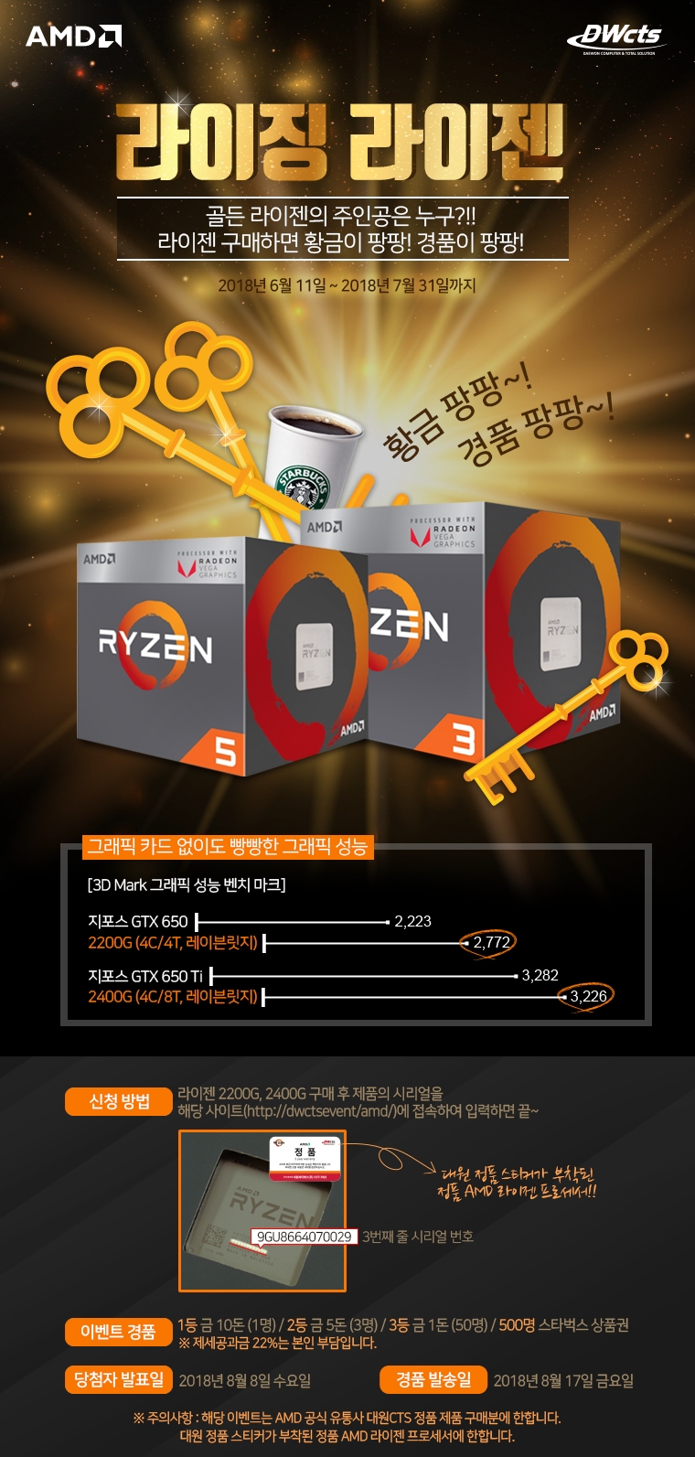 대원 CTS에서 판매하는 정품 AMD 라이젠 3 2200G와 라이젠 5 2400G를 기반으로 시스템을 구축하고 대원CTS 프로모션 페이지(http://dwctsevent.co.kr/amd/)에 접속하여